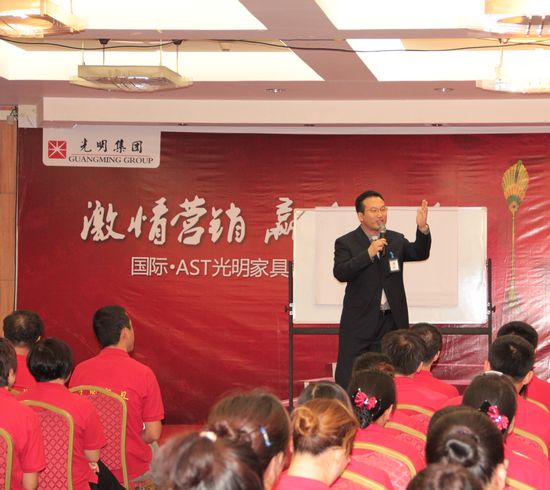 2010年9月9日2010年光明集團股份有限公司激情營銷  贏在終端國際•AST專業(yè)百零二屆暨光明家具首期訓練營在北京北農(nóng)酒店完美落幕!來自光明家具全國分公司的經(jīng)理、店長共170多名學員參加了此次訓練營。光明集團股份有限公司董事長張金鑄先生在訓練營動員會上面講到,集團要發(fā)展,一定要靠學習,學習一定要找專業(yè)的家具培訓公司。這次學員們一定要在這次的培訓大會上面學到知識,運用到家具銷售和企業(yè)管理當中去。并對北京國富縱橫管理咨詢有限公司給予了極高的評價。