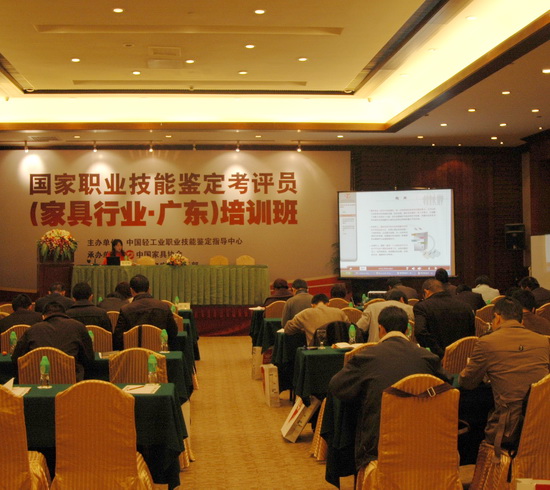 2010年12月17日國家職業(yè)技能鑒定考評員(家具行業(yè)·廣東)培訓(xùn)班在廣東東莞厚街嘉華大酒店順利召開,來自廣東、江蘇各地家具協(xié)會、家具企業(yè)、家具林業(yè)院校共44名學(xué)員參加了此次培訓(xùn)班,特別感謝中國家具協(xié)會、廣東東莞名家具俱樂部、廣東省家具協(xié)會和廣州市家具協(xié)會和江蘇農(nóng)林職業(yè)技術(shù)學(xué)院,廣東順德龍江職業(yè)技術(shù)學(xué)校、廣東順德研發(fā)院、廣東東莞市大嶺山職業(yè)技術(shù)學(xué)校、廣東東莞國際名家具設(shè)計研發(fā)院、聯(lián)邦家私集團、廣東東莞市大嶺山家具協(xié)會、廣東厚街專業(yè)技術(shù)學(xué)校等10余家家具協(xié)會和企業(yè)的鼎力支持和大力幫助。