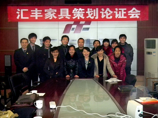 2011年1月7日,國富縱橫總裁趙龍、執(zhí)行總監(jiān)、設(shè)計(jì)總監(jiān)等一行6人奔赴唐山,與匯豐家具高層召開了項(xiàng)目論證會(huì),為企業(yè)指點(diǎn)迷經(jīng),送去打開匯豐振興之門的金鑰匙。