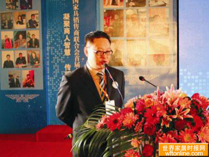 中國家具銷售商聯(lián)合會首屆輪值執(zhí)委郭新文先生作聯(lián)合會組織架構說明和會員組織情況說明