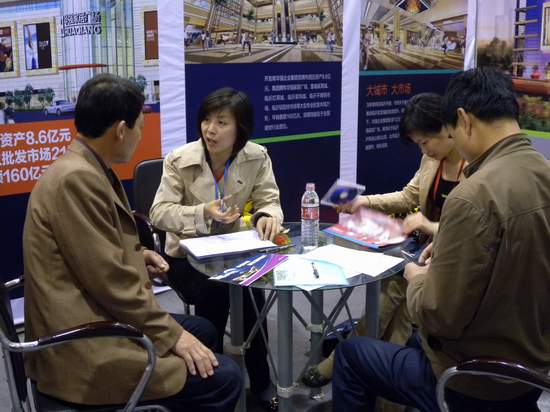 上圖:國(guó)富縱橫策劃部項(xiàng)目經(jīng)理劉婷碩士為客戶詳細(xì)介紹華強(qiáng)家居廣場(chǎng)