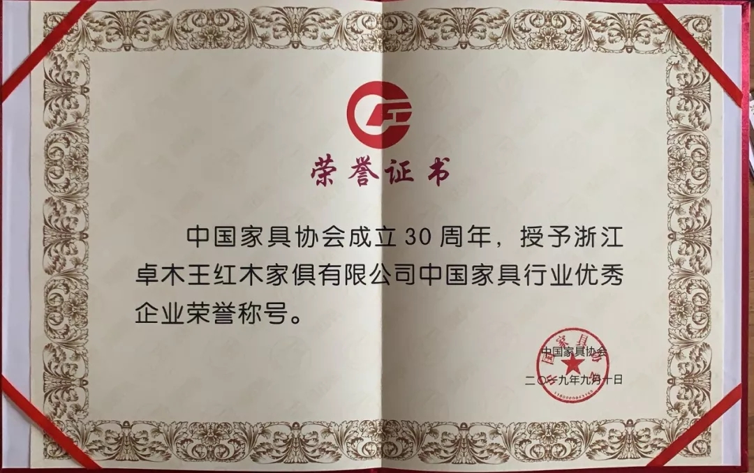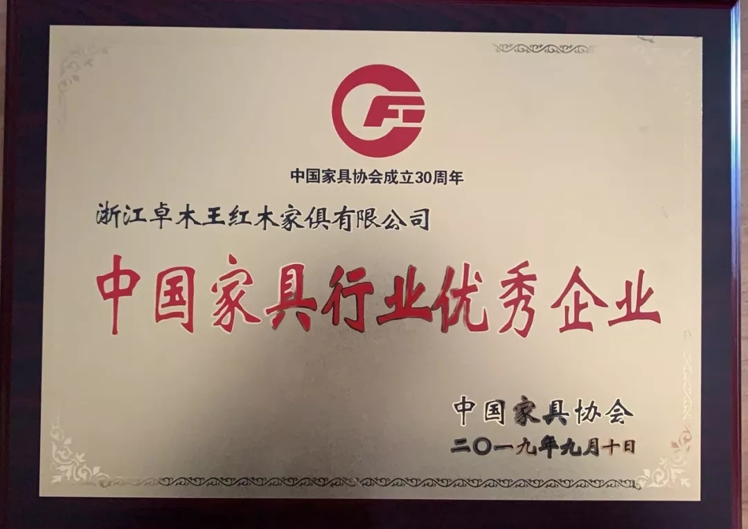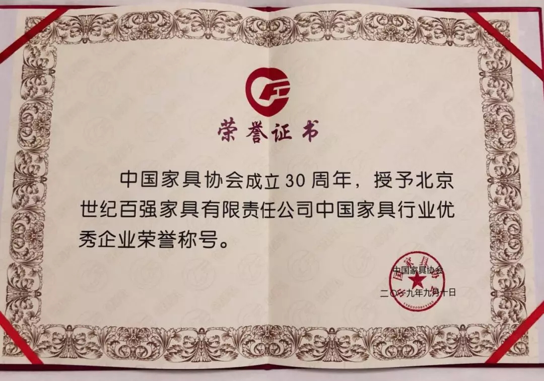 中國家具行業(yè)優(yōu)秀企業(yè)榮譽稱號