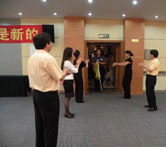 上圖:導(dǎo)師和教練們熱情的歡迎學(xué)員入場(chǎng)